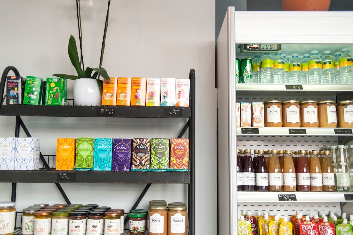 Organic bread, including gluten-free options, in a bakery also serving stuffed focaccia & coffee.